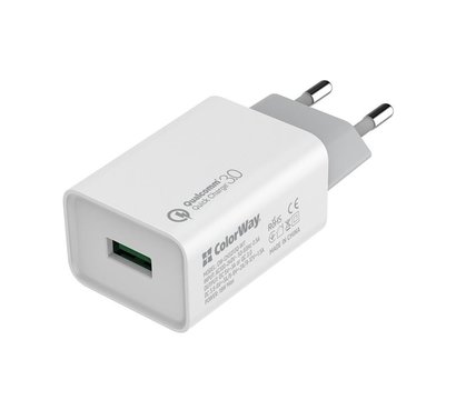 Зарядний пристрій ColorWay QC3.0 (1USB) White — CW-CHS013Q-WT