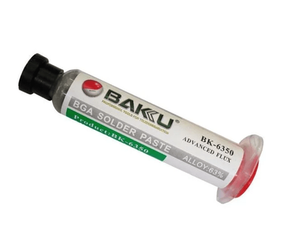 Bakku BK-6350 – паяльна паста на основі 63 відсотки олова і 37 відсотків свинцю. Поставляється картриджем вагою 50 грамів.