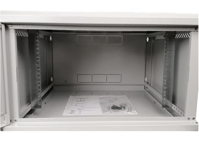 Вирішивши купити цю модель, ви отримуєте не просто металевий бокс, а продуманий елемент інфраструктури. Конструкція передбачає природну вентиляцію через спеціальні отвори, що забезпечує ефективне охолодження активного обладнання навіть при щільному монтажі. У комплекті постачається пара передніх вертикальних реків, які дозволяють точно регулювати глибину встановлення пристроїв.