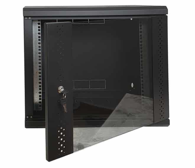 У комплекті постачається пара вертикальних передніх реків, що дозволяє чітко зафіксувати пристрої за рівнем юнітів. Поштовий замок на дверцятах гарантує, що сторонні особи не отримають доступу до налаштувань вашої мережі. Багато користувачів у своїх відгуках відзначають зручність кабельних вводів, які допомагають уникнути перегинів патч-кордів.