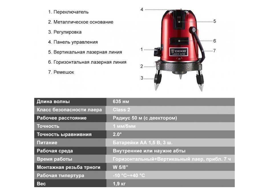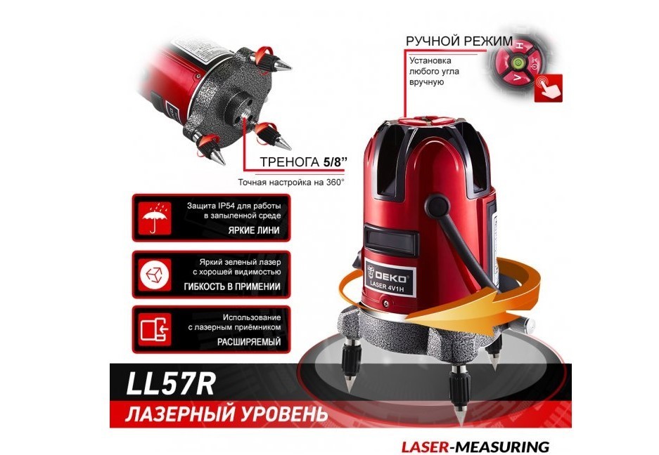 Нівелір Deko LL57R розрахований як на професійних будівельників, так і на майстрів, які виконують ремонт власними силами. Він буде корисним для:
