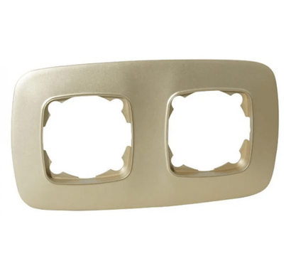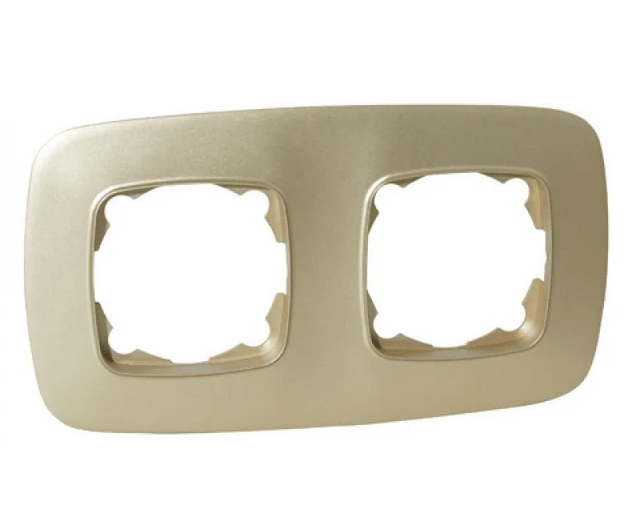 - Тип рамки — двійна, що дозволяє компактно розмістити два модулі (наприклад, розетку та вимикач) в одному блоці.