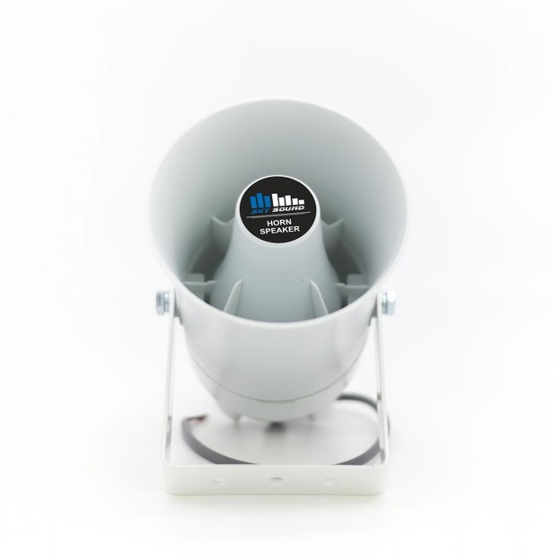 Цей рупорний гучномовець розроблений для роботи в трансляційних лініях і системах озвучування громадських об`єктів. Його головна перевага — здатність «пробивати» фоновий шум, що критично важливо для вокзалів, парковок, спортивних майданчиків та заводських територій. Корпус пристрою виконаний у класичному білому кольорі, що дозволяє йому органічно виглядати на фасадах будівель або опорах освітлення.