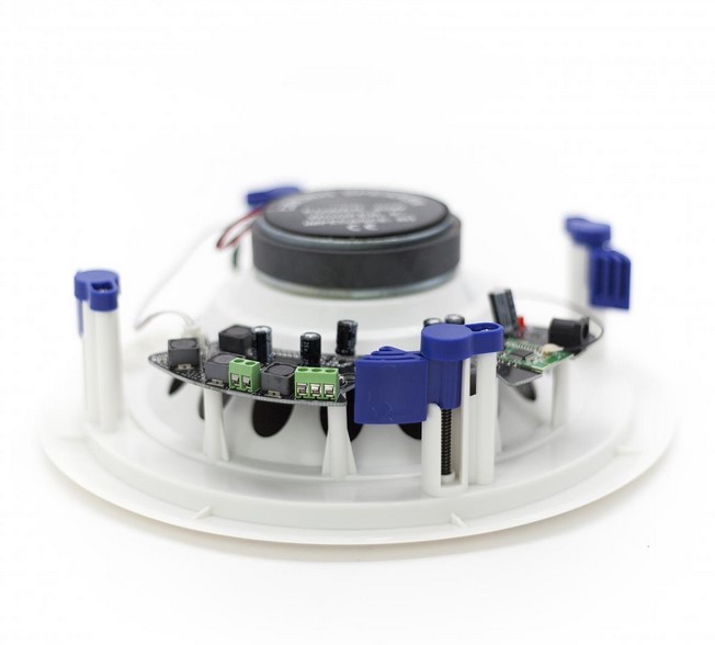 Ця модель являє собою комплект з двох стельових динаміків, де один є активним (з вбудованим підсилювачем та Bluetooth-модулем), а інший — пасивним, що підключається до основного пристрою. Таке рішення дозволяє мінімізувати втручання в інтер’єр та значно спрощує процес налаштування. Активна + пасивна конфігурація забезпечує повноцінний стереоефект, що критично важливо для створення приємної атмосфери в комерційних закладах.