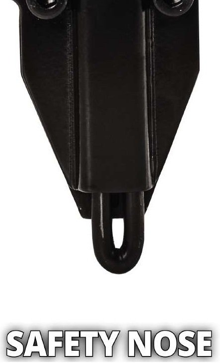 Виробник приділив особливу увагу ергономіці та безпеці майстра. Про прогумована рукоятка забезпечує впевнений хват і гасить вібрації під час пострілу, що дозволяє працювати тривалий час без дискомфорту. Головною особливістю моделі є **запобіжний носик**, який унеможливлює випадковий пуск інструменту — постріл відбувається лише тоді, коли степлер щільно притиснутий до робочої поверхні.