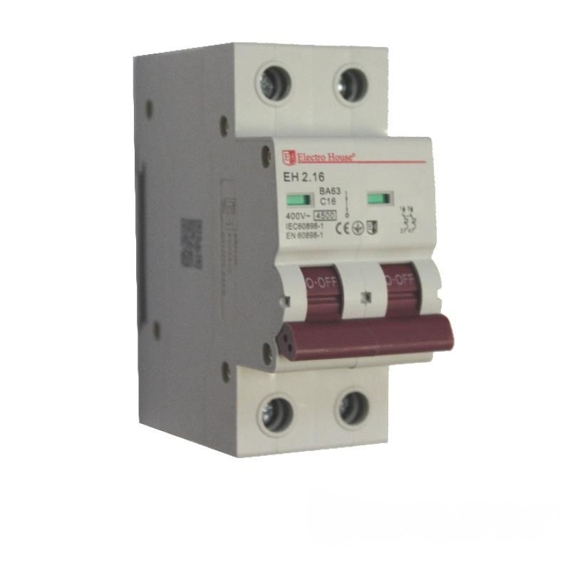 Автоматичний вимикач ElectroHouse EH-2.16 2Р 16А (4.5кА) є надійним рішенням для захисту мережі.