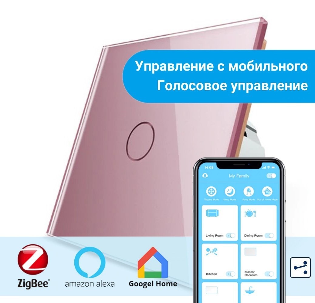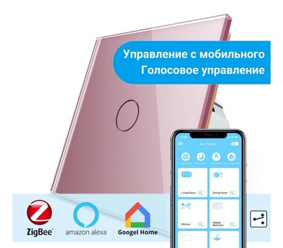 Смарт вимикач Livolo ZigBee VL-C701SZ-17 Pink glass