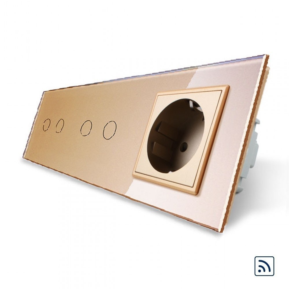 - Сенсорный радиоуправляемый выключатель Livolo 4 канала (2-2) с розеткой золото (VL-C702R/C702R/C7C1EU-13)