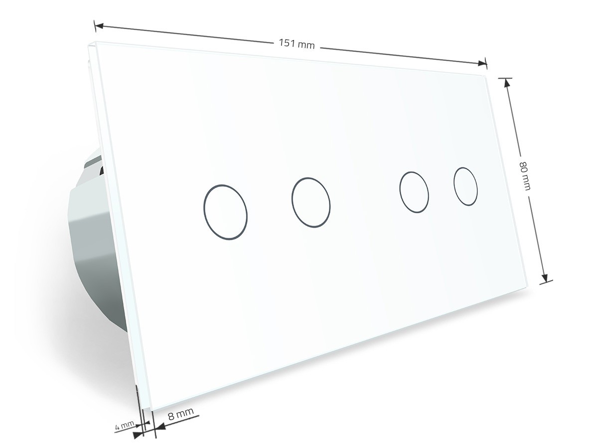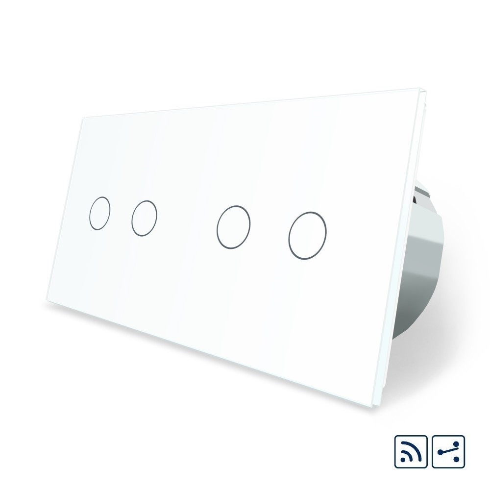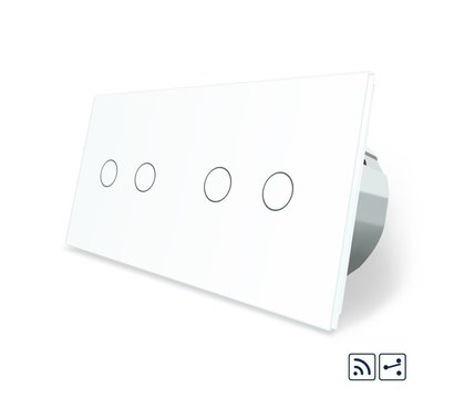 - Сенсорный радиоуправляемый проходной выключатель Livolo 4 канала (2-2) белый стекло (VL-C702SR/C702SR-11)