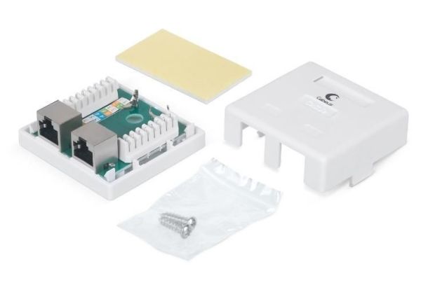 Hypernet MB-STP6-2 – двох портова комп`ютерна RJ-45 розетка під накладний монтаж. Розетка використовується у екранованих мережах категорії 6. Колір білий. Для монтажу в комплектацію входить комплект саморізів та двостороння клейова основа.