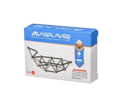 Виробник дитячих магнітних конструкторів MagPlayer вміє дивувати! Так, в магнітний набір MagPlayer MPS-66 входить 66 елементів: у формі кульок (30 шт.) та паличок (36 шт.). Гра дозволяє розвивати у дитини креативність, просторову уяву, інтелект, математичне мислення та дрібну моторику. Також в набір входить детальна інструкція, в якій описані приклади збирання деталей у різноманітні фігури: зірку, діамант, піраміду, кулю, корону, декаедр, човен тощо. Всі елементи набору містять магніт, який міцно притягує деталі, що дозволить гарно фіксувати складені фігури та гратись ними. Набір містить дрібні елементи, тому рекомендований вік 14+.