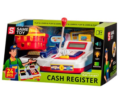 Іграшковий касовий апарат – чудовий спосіб зробити дитячу гру «в магазин» більш реалістичною. Ігровий набір містить усе необхідне для захопливої гри: касовий апарат з калькулятором і мікрофоном, сканер, корзинку з набором продуктів, кредитну картку, грошові купюри і навіть монетки. Як і справжній касовий апарат, іграшковий також закривається на ключик. А відкрити його можна, натиснувши на кнопку «Open». Особливість іграшки – звукові ефекти, які точно відповідають тим, що можна почути біля каси у справжньому супермаркеті: наприклад, звук сканування товару. Живлення від батарейок типу АА (в комплект не входять). Для дітей від трьох років.