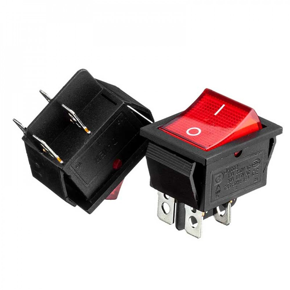 Цей клавішний перемикач (рокерний тип) є стандартом у світі радіоелектроніки завдяки своїй зносостійкості та простоті монтажу. Він призначений для роботи в мережах змінного струму та витримує значні пускові навантаження. Червона клавіша забезпечує чітку візуальну індикацію стану пристрою, що критично важливо для безпеки експлуатації електроприладів. Виріб має прямокутну форму, що дозволяє легко встановлювати його у стандартні отвори на панелях управління.