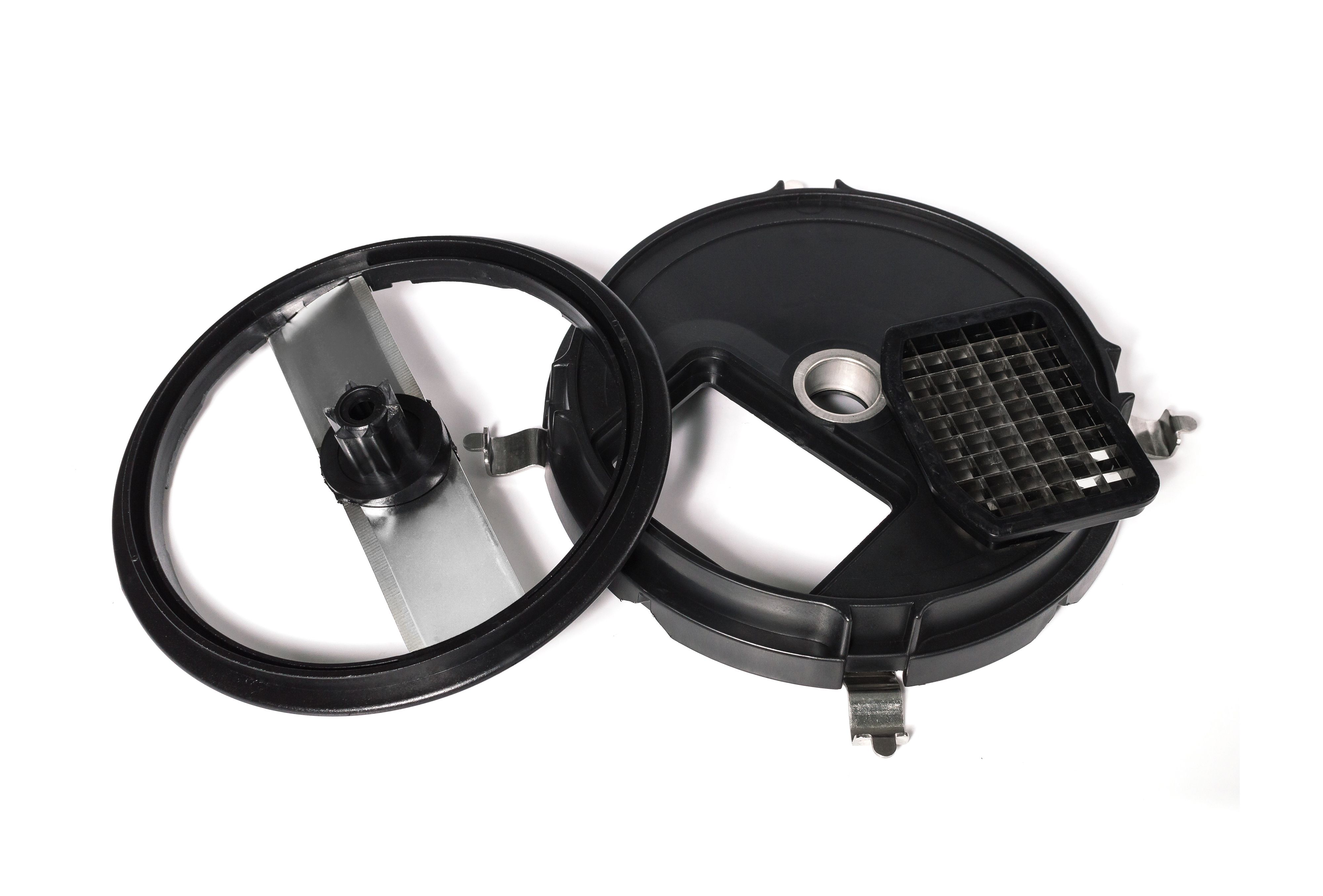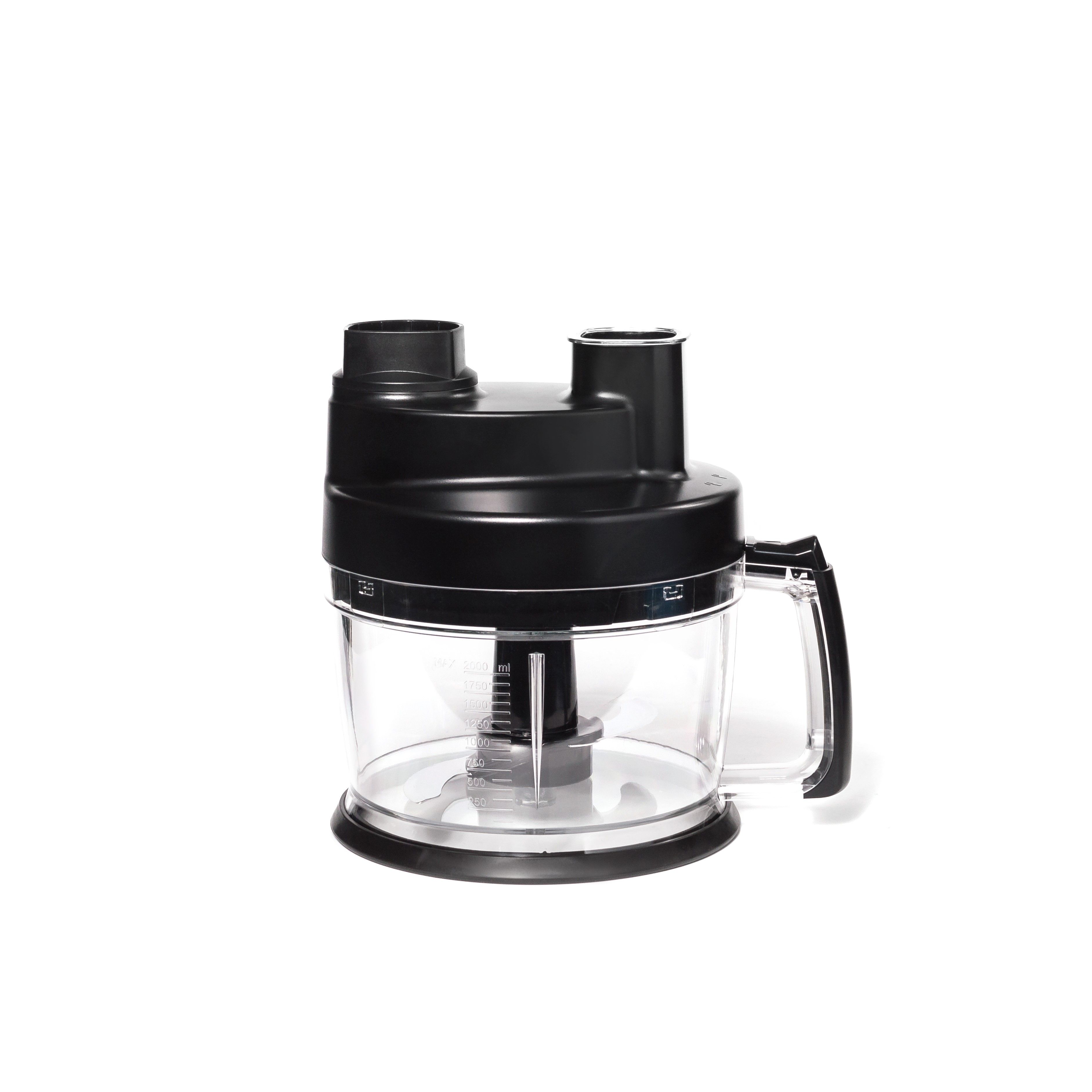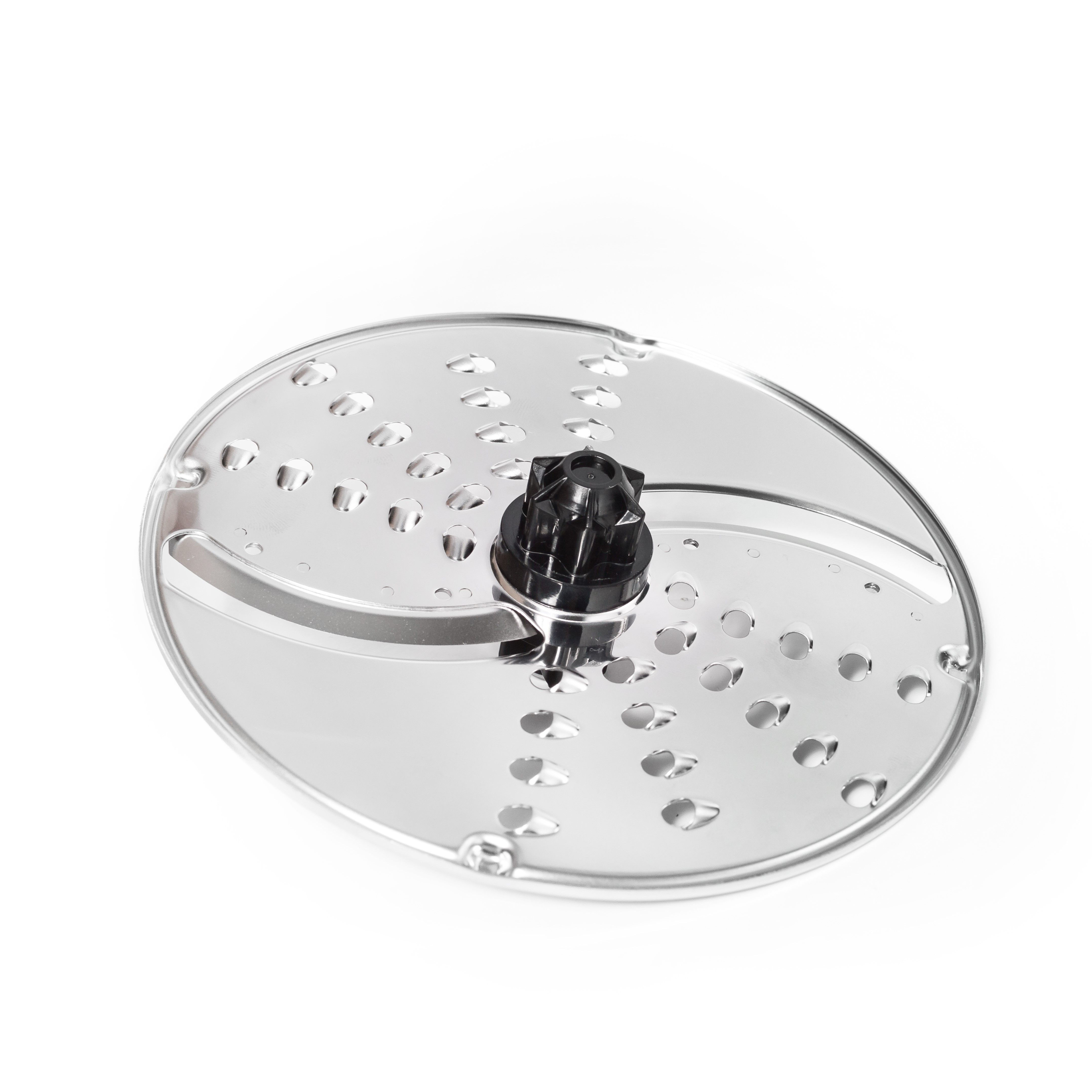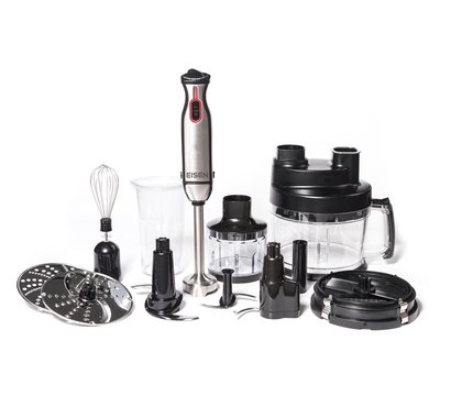 Укомплектований: великий чашею (2000 мл) і об’ємною чашею подрібнювача (400 мл), мірним стаканом з кришкою 600 мл, насадкою для дерунів і шинкування, а також, кубикорізкою (8х8 мм). Завдяки надійній конструкції і нескладному управлінню, пристрій з легкістю справляється з поставленими завданнями.