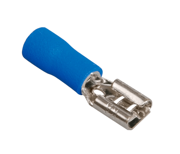 Синій колір ізоляції — це не просто дизайнерське рішення, а відповідність міжнародним стандартам маркування. Він вказує на сумісність наконечника з проводами певного діапазону перерізу (зазвичай 1.5–2.5 мм²), що значно спрощує роботу електрика при підборі комплектуючих на об`єкті. Завдяки наявності ізоляційного фланця, місце з’єднання кабелю з клемою захищене від перегинів та випадкових дотиків до струмопровідних частин сусідніх роз’ємів.