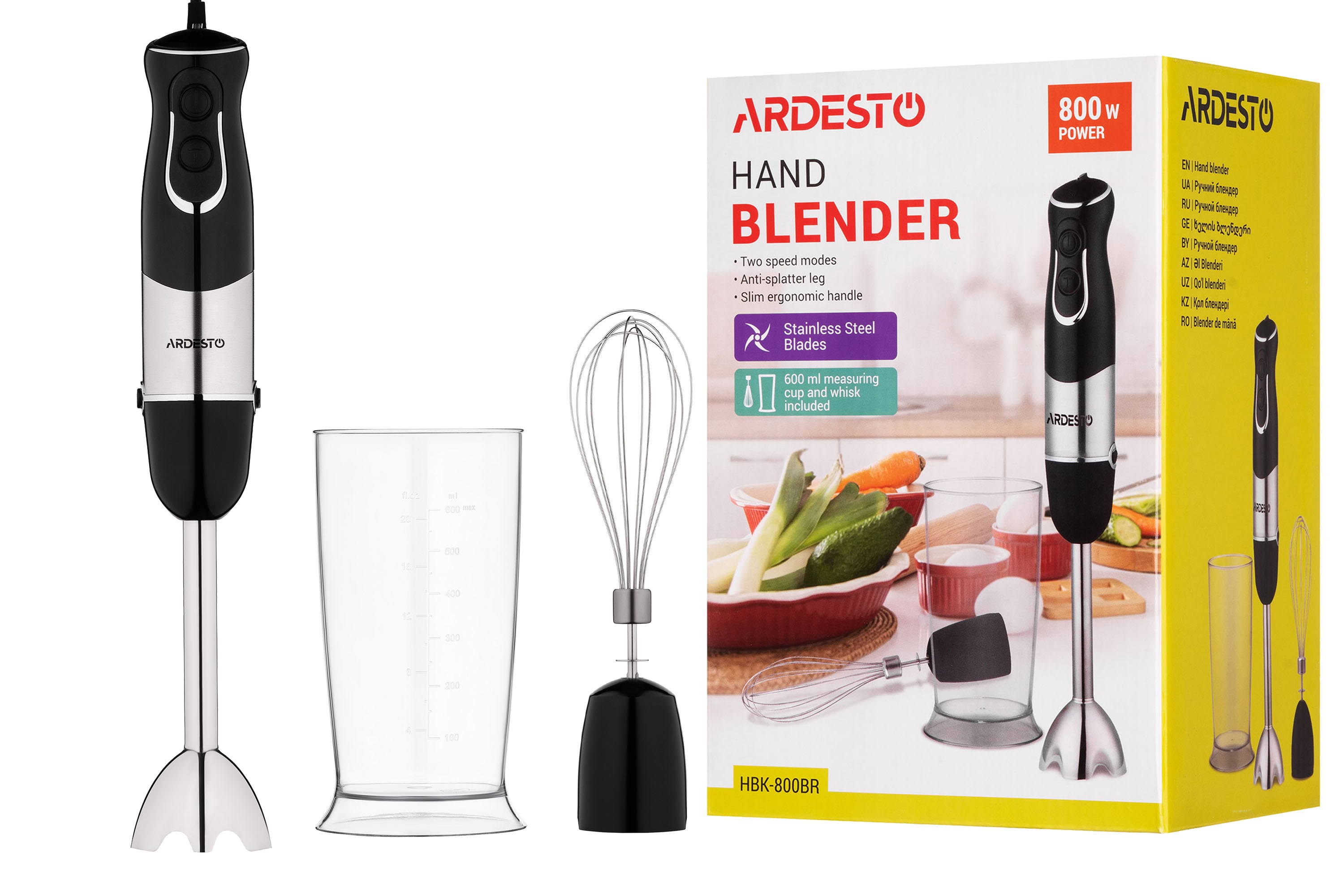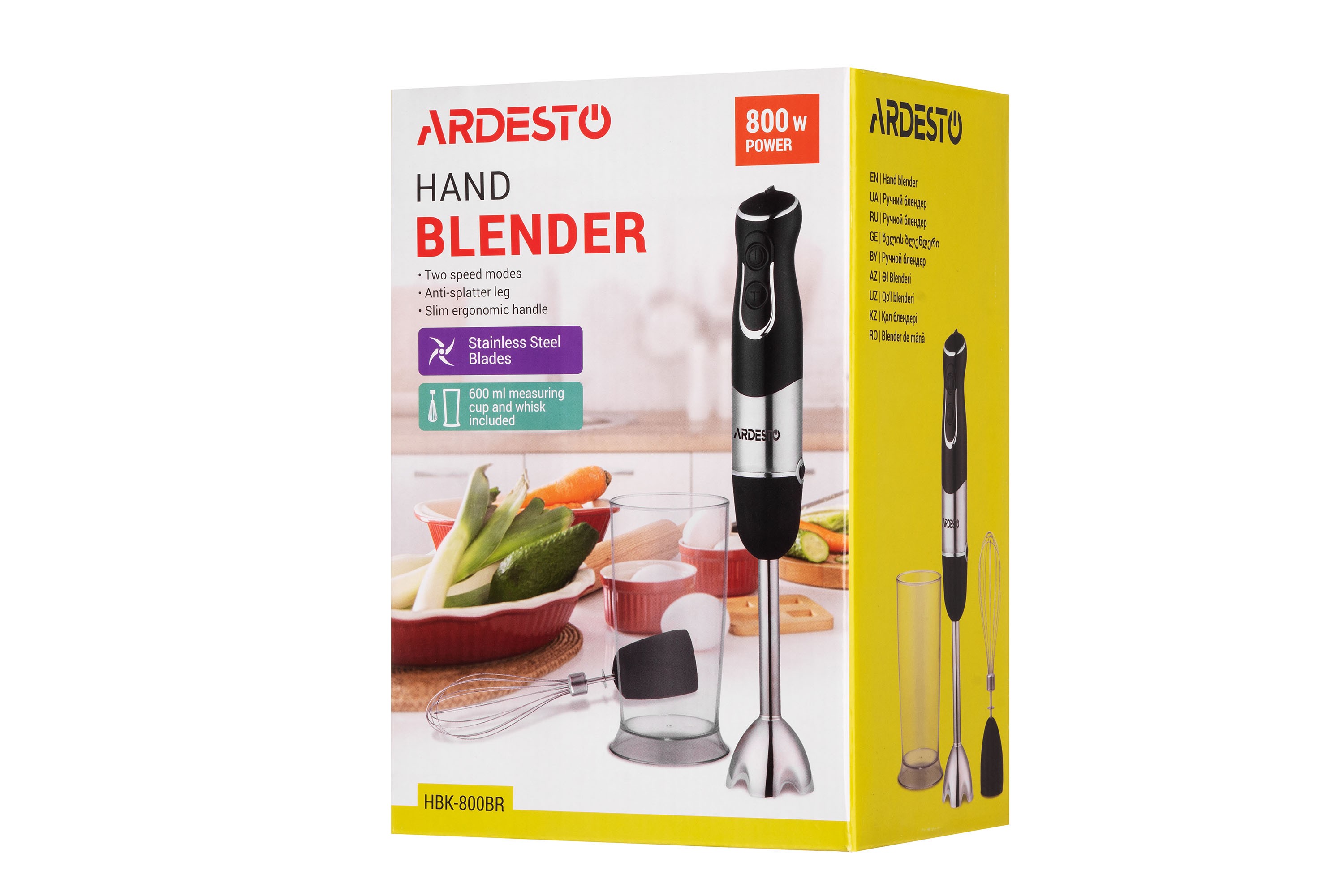 На зручній ергономічній ручці з Soft touch покриттям блендера ARDESTO HBK-800BR розміщено кнопки керування та перемикання між дев’ятьма режимами швидкості.