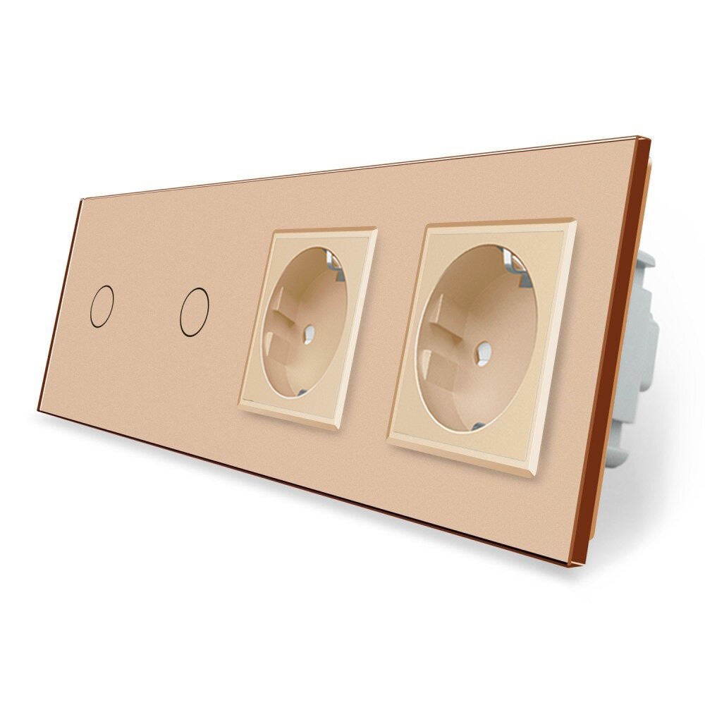 - Сенсорный выключатель 2 сенсора 2 розетки Livolo золото стекло (VL-C701/C701/C7C2EU-13)