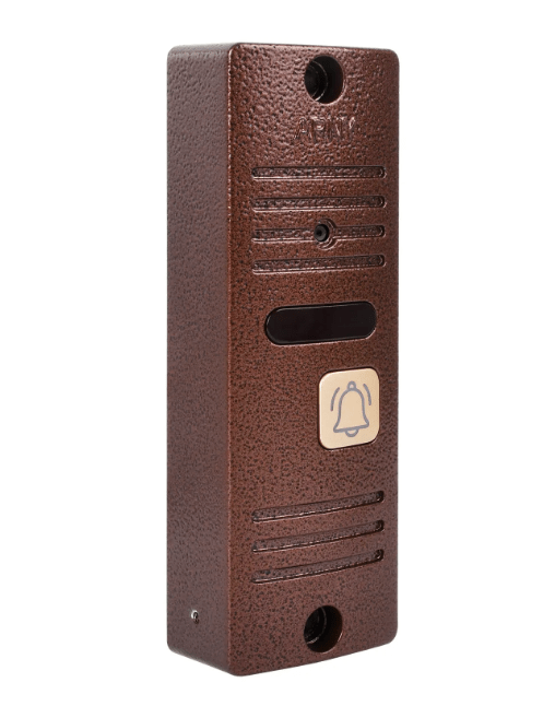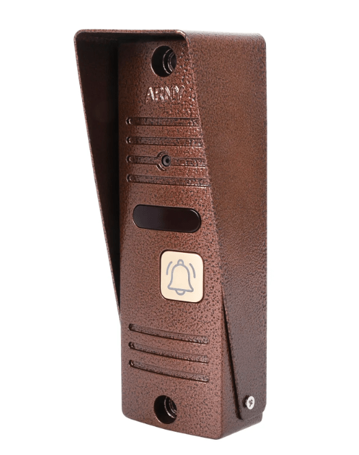 Ця відеопанель є оновленою версією популярної лінійки від відомого виробника Arny. Вона поєднує в собі естетичний дизайн та вандалостійкі характеристики. Мідний колір корпусу (Cupper) дозволяє пристрою гармонійно вписатися в екстер`єр як сучасних будівель, так і класичних споруд. Використання металу як основного матеріалу гарантує високу якість збірки та довговічність навіть при інтенсивній експлуатації на вулиці.