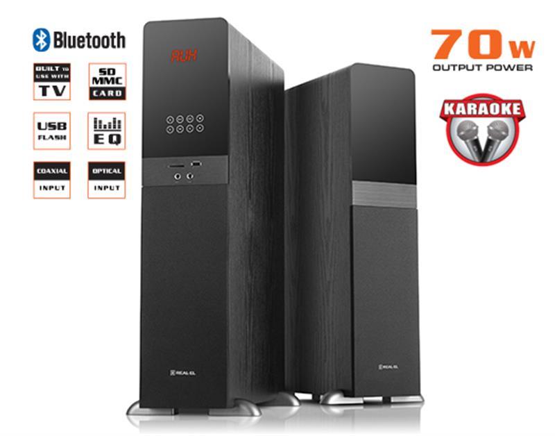 Оптимізований кросовер призначено для покращення чистоти звучання, три активні динаміки для відтворення повного спектру частот, коаксіальний та оптичний вхід. Якщо є бажання налаштувати звук на свій смак, можна скористатися вбудованим еквалайзером. Про любителів співу теж не забули, їх порадують аж два мікрофонні входи для КАРАОКЕ.