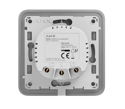 - Як встановлюється Ajax LightCore 2-gang? Він монтується у стандартний підрозетник. Для його роботи не завжди потрібен нейтральний провід (нуль), що значно спрощує заміну старих вимикачів на нові.