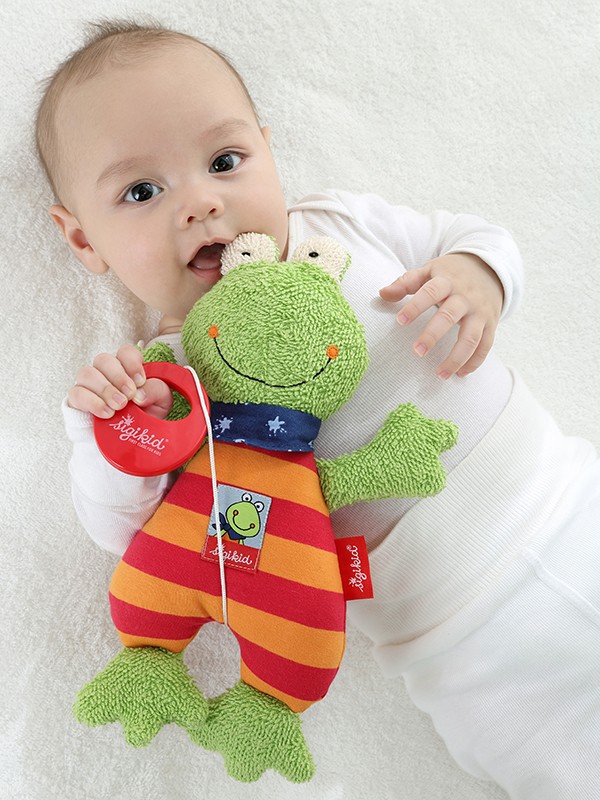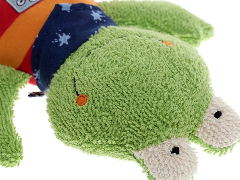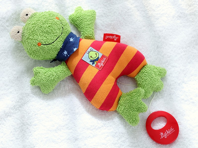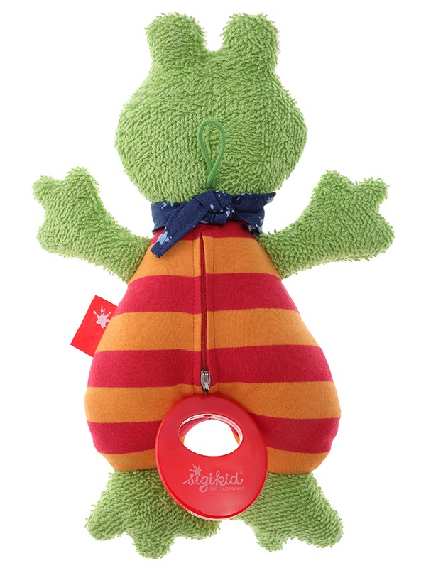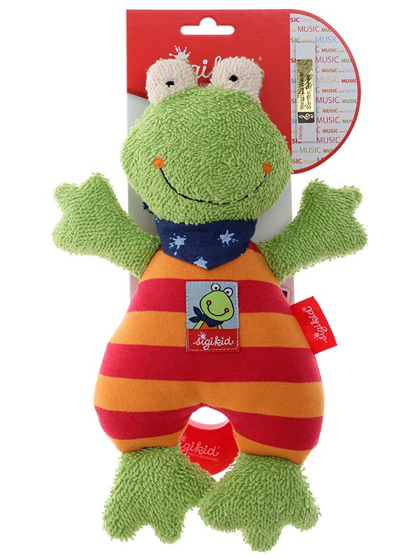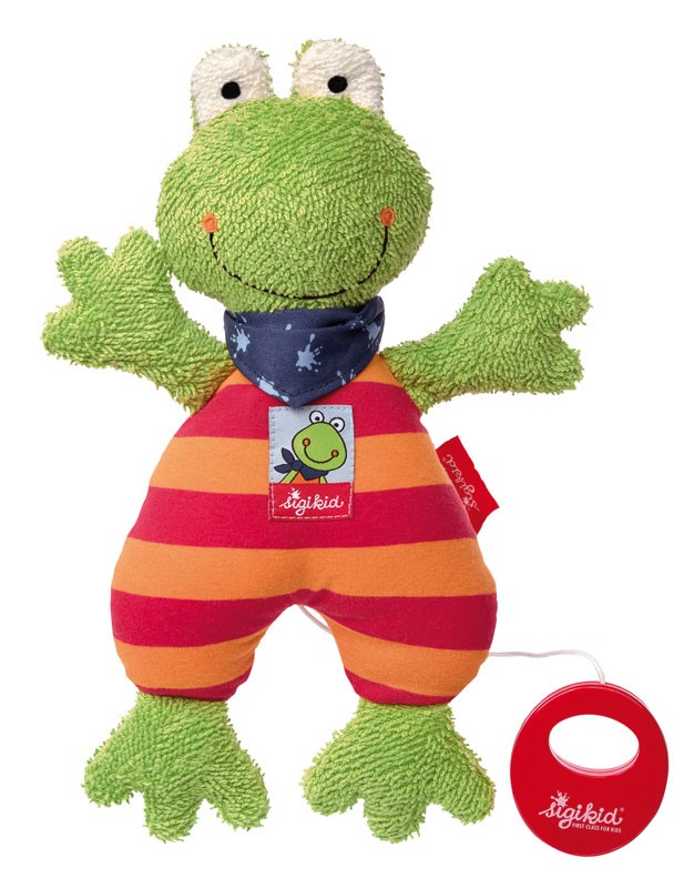 М`якенька та водночас музична іграшка у вигляді жабки. Іграшка всередині з музичною скринькою, яка дуже просто запускається. Просто потягніть за спеціальне червоне кільце і іграшка почне програвати приємну колискову. Заспокійлива мелодія сприятиме міцному сну дитини. Щаслива жаба з шарфом простягає лапки для обіймів. Гармонійні нейтральні кольори заспокоюватимуть дитину. Така жабка – ідеальний подарунок на хрещення або день народження немовляти.