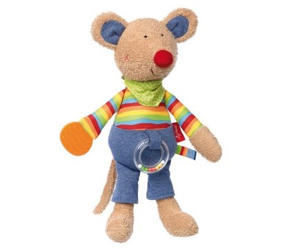 Мишеня «Колін» у веселковій кофтинці, з оригінальним шарфом. Така іграшка стане чудовим компаньйоном дитини у щоденних справах і звершеннях. Мишеня з брязкальцем, яке допоможе дитині розвинути дрібну моторику, слухове сприйняття. На одній із лапок мишеняти – силіконовий наконечник-прорізувач. Барвиста тваринка простягає лапки і закликає дитину до гри. Підходить для дітей віком від народження. Безпечність матеріалів затверджена німецькими стандартами якості. Розмір 32х12х12.