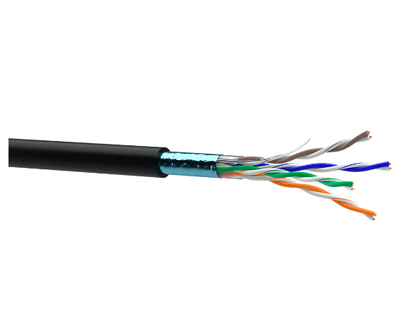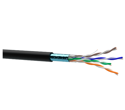 Головною відмінністю цієї моделі є екранований тип конструкції (F/UTP). Шар алюмінієвої фольги захищає сигнал від електромагнітних наведень, які часто виникають при паралельному прокладанні з силовими лініями електропередач. Чорна зовнішня оболонка виготовлена з поліетилену високої щільності, стійкого до сонячного випромінювання та опадів, що робить його ідеальним вибором для зовнішнього середовища.