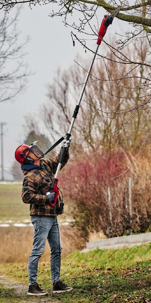 Висоторіз Einhell GC-EC 7520 T серії Classic є потужним інструментом, який допоможе Вам зрізати високі гілки дерев із землі, не використовуючи при цьому додаткових пристроїв. Регульований ремінь для перенесення акумуляторної пилки телескопічної Einhell GC-EC 7520 T сприяє рівномірному розподілу ваги і безпечній роботі. Довжина пили з ріжучою частиною завдяки телескопічній штанзі, що розширюється, вільно регулюється від 1,78 м до 2,57 м. Таким чином, ви можете досягти робочої висоти від 3,3 м до 4,0 м.