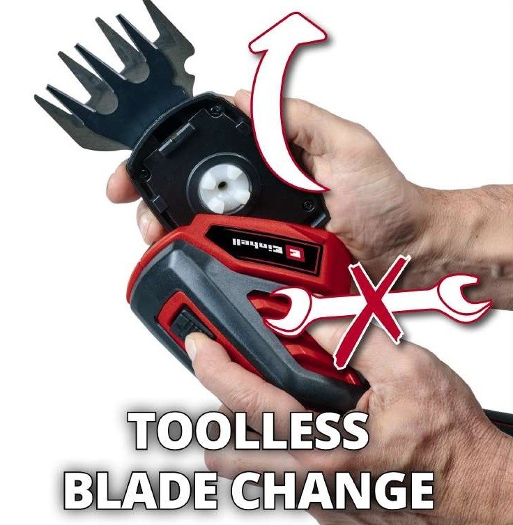 Ножиці для трави акумуляторні Einhell GC-CG 3,6/70 - це бездротовий інструмент, призначений для обрізання трави та кущів. Ножиці працюють на літій-іонному акумуляторі з напругою 3,6 вольта. Акумулятор входить в комплект і може бути заряджений для бездротової роботи. Ножиці мають леза довжиною 70 мм. Ця довжина робить їх ідеальними для точного і маневреного обрізання трави і кущів у важкодоступних місцях. Максимальна ширина різання становить 70 мм, що дозволяє легко і ефективно обрізати траву та кущі.