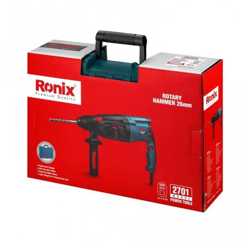 Перфоратор Ronix 2701 може виконувати ударне свердління, довбання, свердління та вивільнення - чотири функції, які може виконувати перфоратор Ronix 2701 завдяки потужному двигуну потужністю 800 Вт та діапазону швидкостей холостого ходу від 0 до 1100 об/хв. Його джерело живлення забезпечується підключенням до розетки 220-240 В та 50-60 Гц.