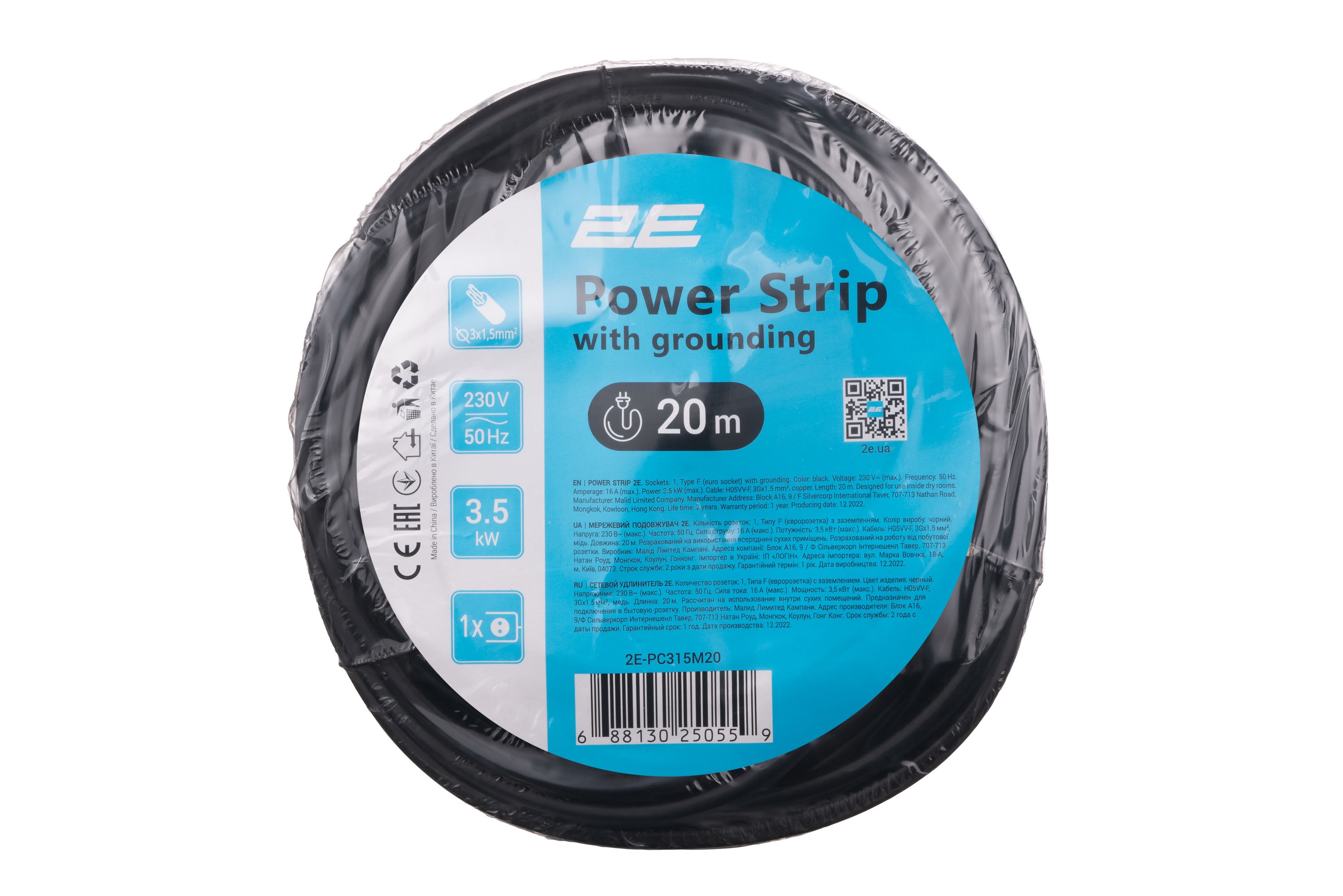 Подовжувач 2E 2E-PC315M20, 3G*1.5мм, 20м, Black