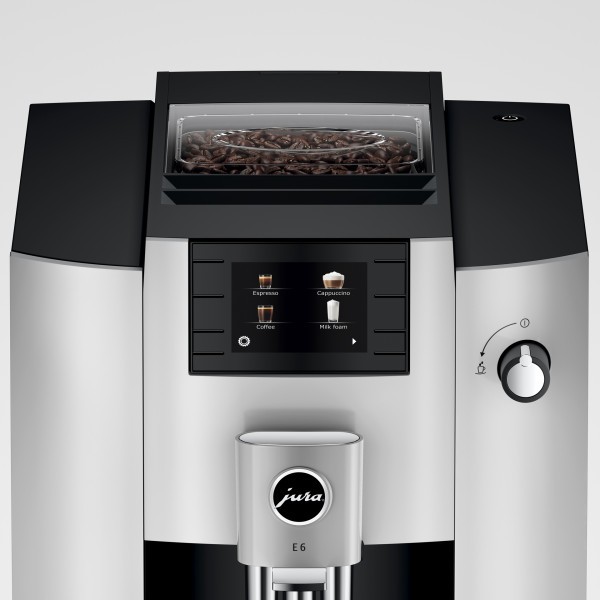 - Чи підходить ця модель для великого офісу? Так, Jura E6 Platin (EC) має статус професійної сфери використання та легко витримує навантаження у невеликих та середніх офісних колективах.