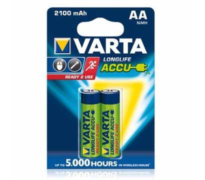 Varta AA/HR06 акумуляторна ACCU 2100 mAh Лі 2 являє собою набір з двох держав-арт-батарей, які виділяються для приголомшливою швидкістю зарядки. Переваги цих батарей ємністю 2100 маг також слід віднести до досить довгого життя. Розмір батареї є популярним АА. Робоча напруга 1,2 вольт.