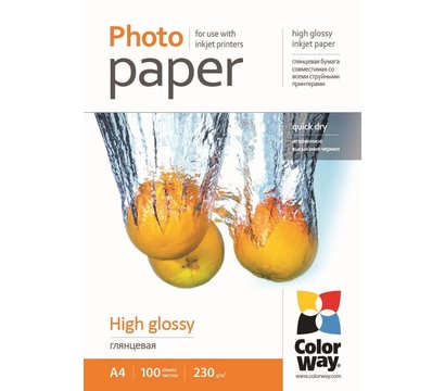 - Фотобумага ColorWay глянцевая 230г/м, A4 PG230-100 карт.уп.