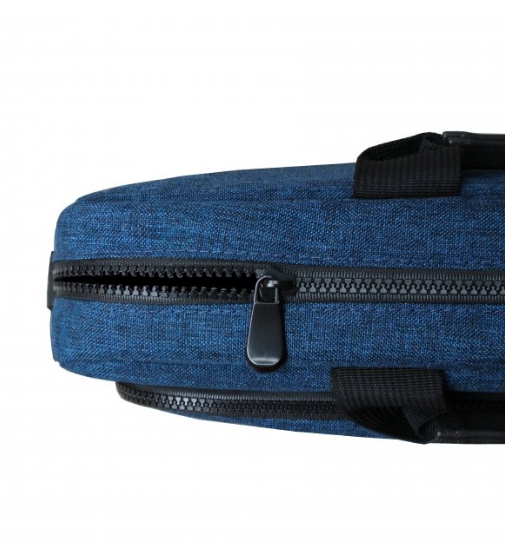 Дана модель - модифікація популярної сумки SB-129 для тих хто втомився від сумок чорного кольору і тактильних відчуттів сумок з нейлону і поліуретану. Сумка виготовлена ??з сучасного матеріалу, зовнішня сторона якого за кольором і структурою нагадує денімовую тканину, а внутрішня - водовідштовхувальна. Ударопоглинаюча вставки в стінках захищають ноутбук від ударів і тримають форму, а ручки з штучної шкіри додають комфорт в експлуатації.