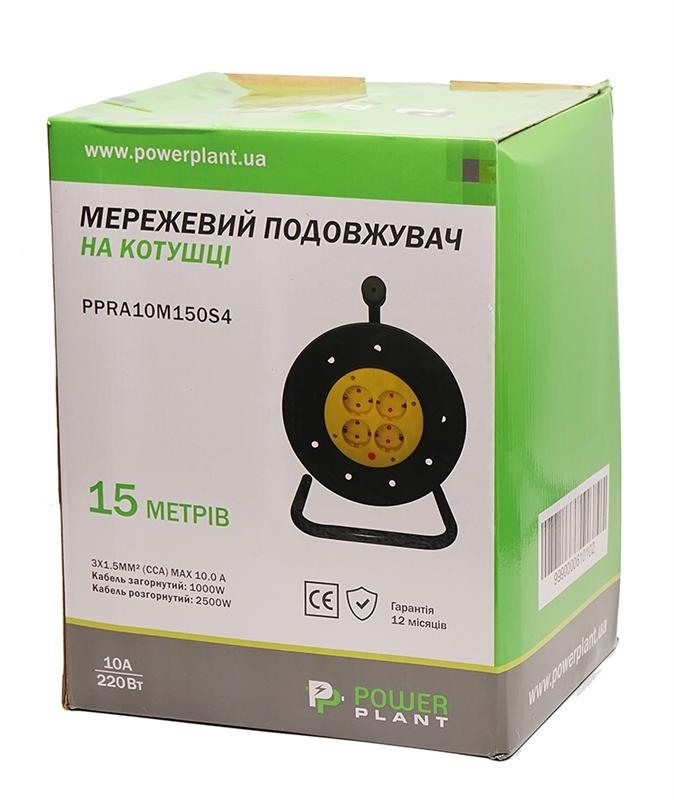 Мережева котушка PowerPlant JY-2002/15 15м Black/Yellow — PPRA10M150S4 4 розеток