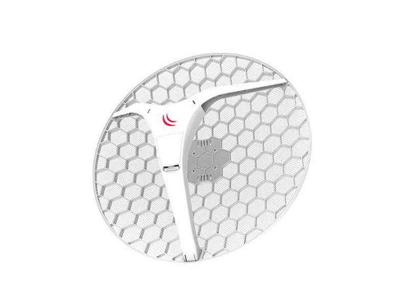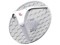 MikroTik LHG XL HP5 (RBLHG-5HPnD-XL) - потужна антена з вбудованою точкою доступу, яка призначена для підключення до БС провайдеру або точкових з"єднань. Вона має сітчасту круглу форму. Головне завдання, що виконується антеною - створення узконаправленного променя за допомогою відбивача сітчастого типу. Технічні показники LHG XL HP5 має досить великий діаметр антени в 55 см. Коефіцієнт посилення роботи дорівнює 27 dBI. Прояв найбільшої ефективності роботи випадає на частоти від 5,7 до 5,8 ГГц. Кругла форма двухполярізаціонной антени дозволяє забезпечити рівномірний коефіцієнт посилення як у вертикальній, так і в горизонтальній поляризації. RBLHG-5HPnD-XL відрізняється високою потужністю роботи, яка досягає значення в 630 мВ. Завдяки цьому стало можливим підключення до мережі на відстані 40 км при створенні бездротового моста типу «точка-точка». Випромінювач розташований у верхній частині антени і прикріплений до рефлектора 3 точки. Це дозволило зробити саму конструкцію більш жорсткою і стійкою. Кут випромінювання сигналу дорівнює 6,4 градусів. Низьке споживання електроенергії робить даний пристрій економічним. Так, для його харчування потрібно всього 7 Вт. Сфери використання Мікротік LHG XL HP5 використовується для підключення до базової станції віддалених клієнтів в режимі PtMP. За рахунок високого коефіцієнта посилення і вузької спрямованості променя такий пристрій стане відмінним варіантом при створенні бездротових мостів початкового рівня на великі відстані типу точка-точка. Завдяки особливим конструктивним характеристикам створений міст з двох таких антен зможе забезпечити високу стабільність і швидкість передачі даних на далеких дистанціях. Умови використання Прилад пройшов спеціальні тести, що визначають оптимальні умови для коректної роботи. Температурний діапазон коливається в межах -40 - +70 градусів. Допустима вологість від 5 до 95 відсотків (з умовою, що конденсація відсутня). Є спеціальна антивібраційна захист і спеціальне покриття, стійке до ультрафіолетового випромінювання, забруднень і т.д.
