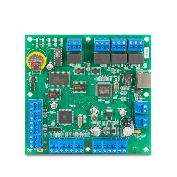 На основі контролера Форнет АНК-E v 1,1 реалізовано 2 1-прохідні пункти./кнопка і одна 2-стороння читає. Припустимо підключення до 2 зовнішніх зчитувачів (можна поєднувати з клавіатурою) з`єднання, з яким побудовано на інтерфейсі Wiegand 26 біт. Підключення їх з`єднання поширюється на 150 метрів. Дозволяється спілкуватися з максимум двома кнопками виходу. Є чотири реле виходи на борт (поточне перемикання не перевищує позначку 5 ампери) і шість входів для детекторів. На підтримку злому сигналізації.