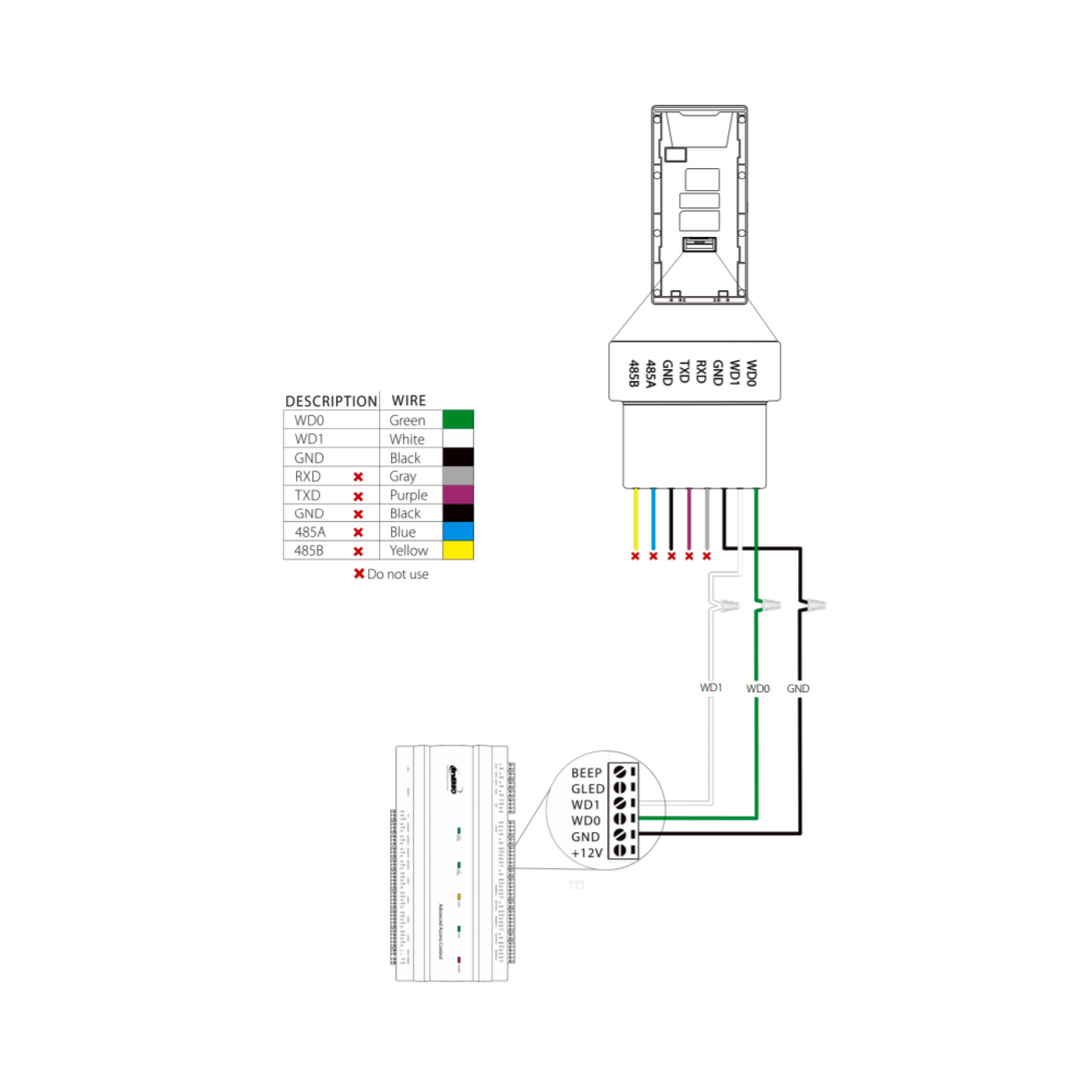 У владі, термінал zkteco ProCapture-WP потребує 12 вольт джерела напруги.